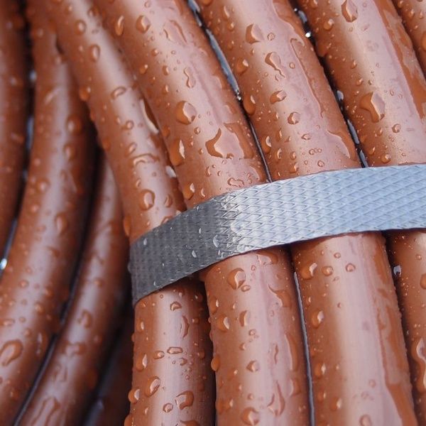 Tube en polyéthylène pour système d'irrigation goutte-à-goutte, de couleur marron, non percé.